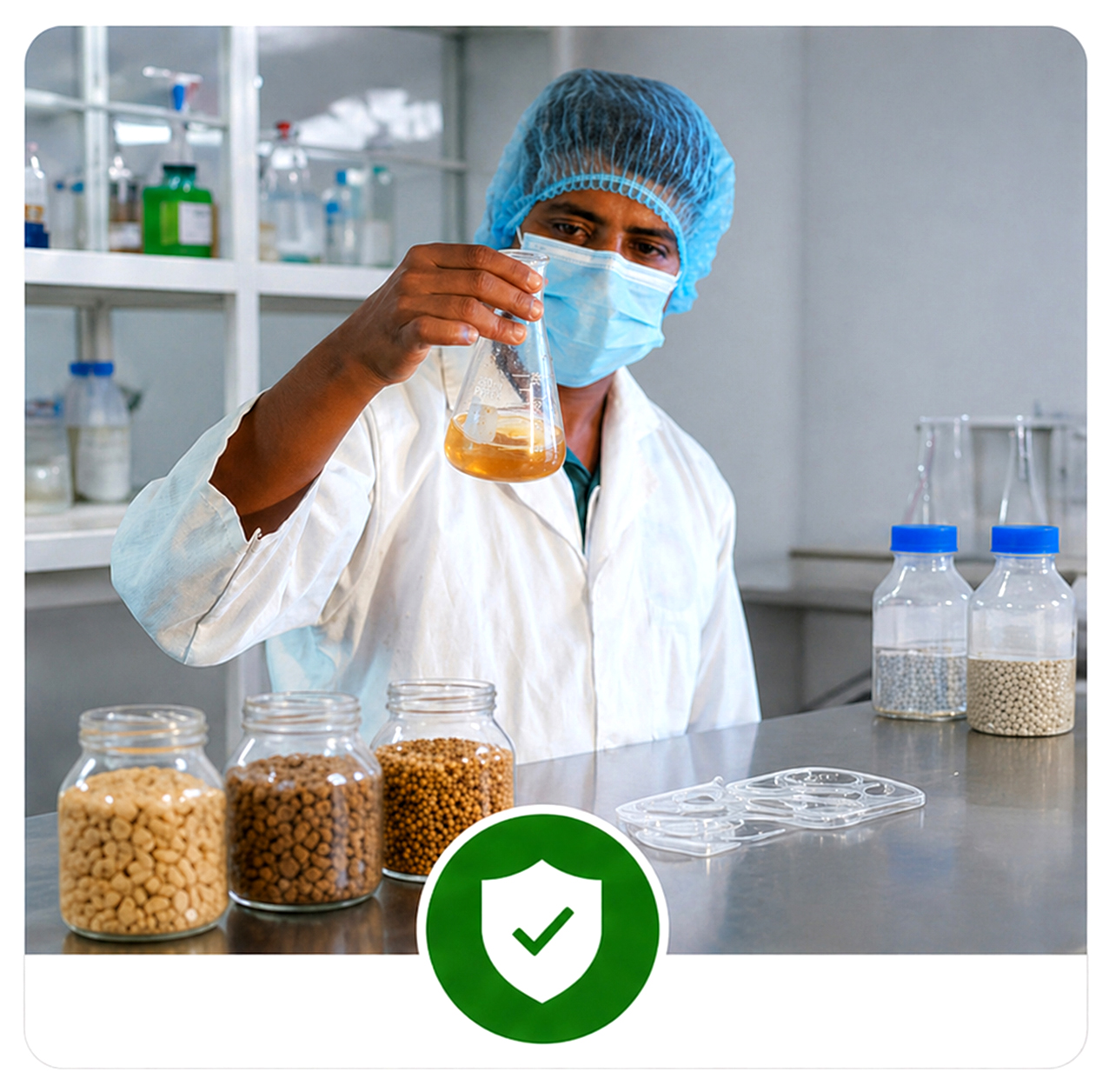 We ensure premium quality fish feed by selecting the best raw materials and testing them in our modern laboratory to maintain safety, nutrition, and consistency.