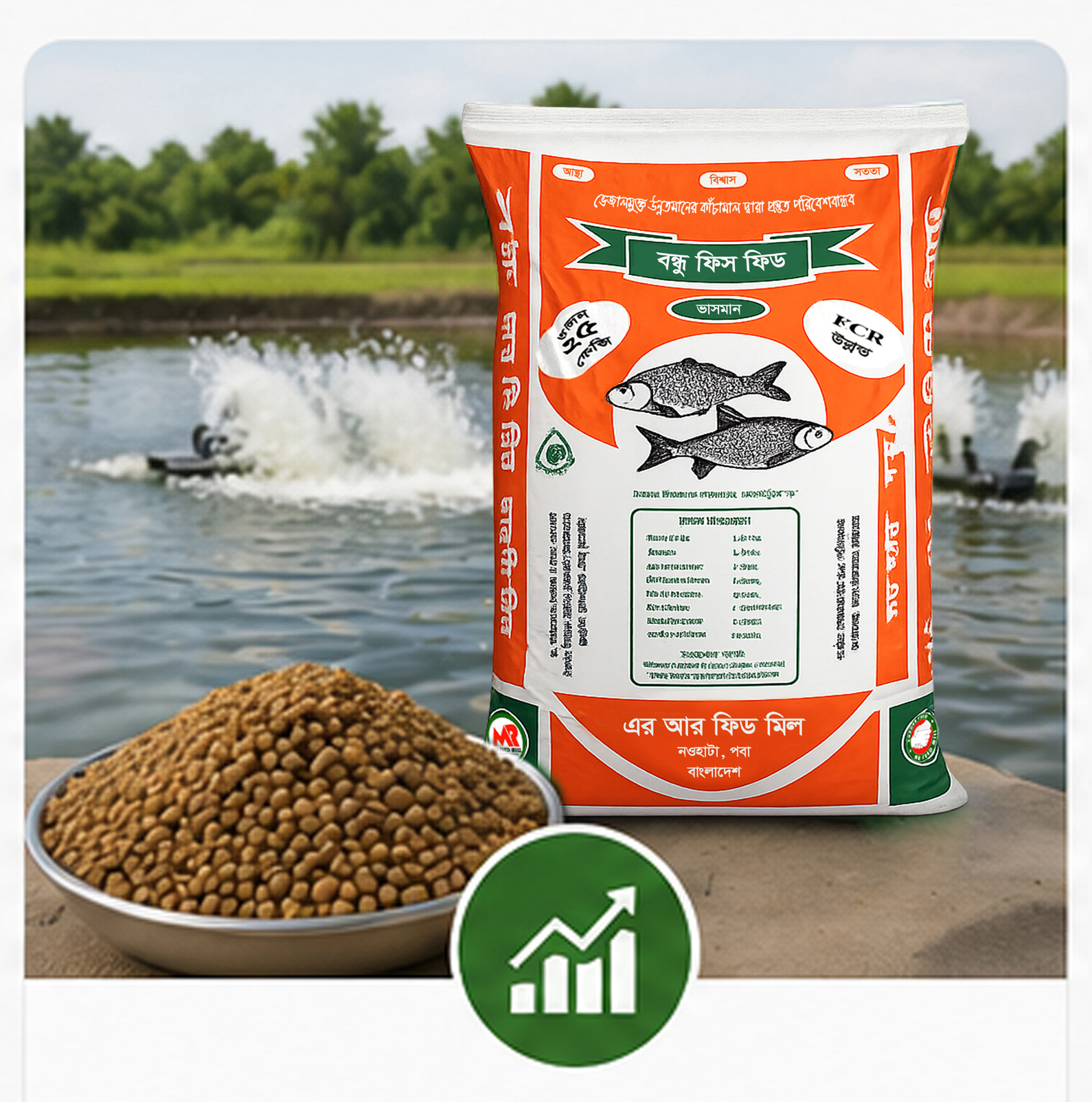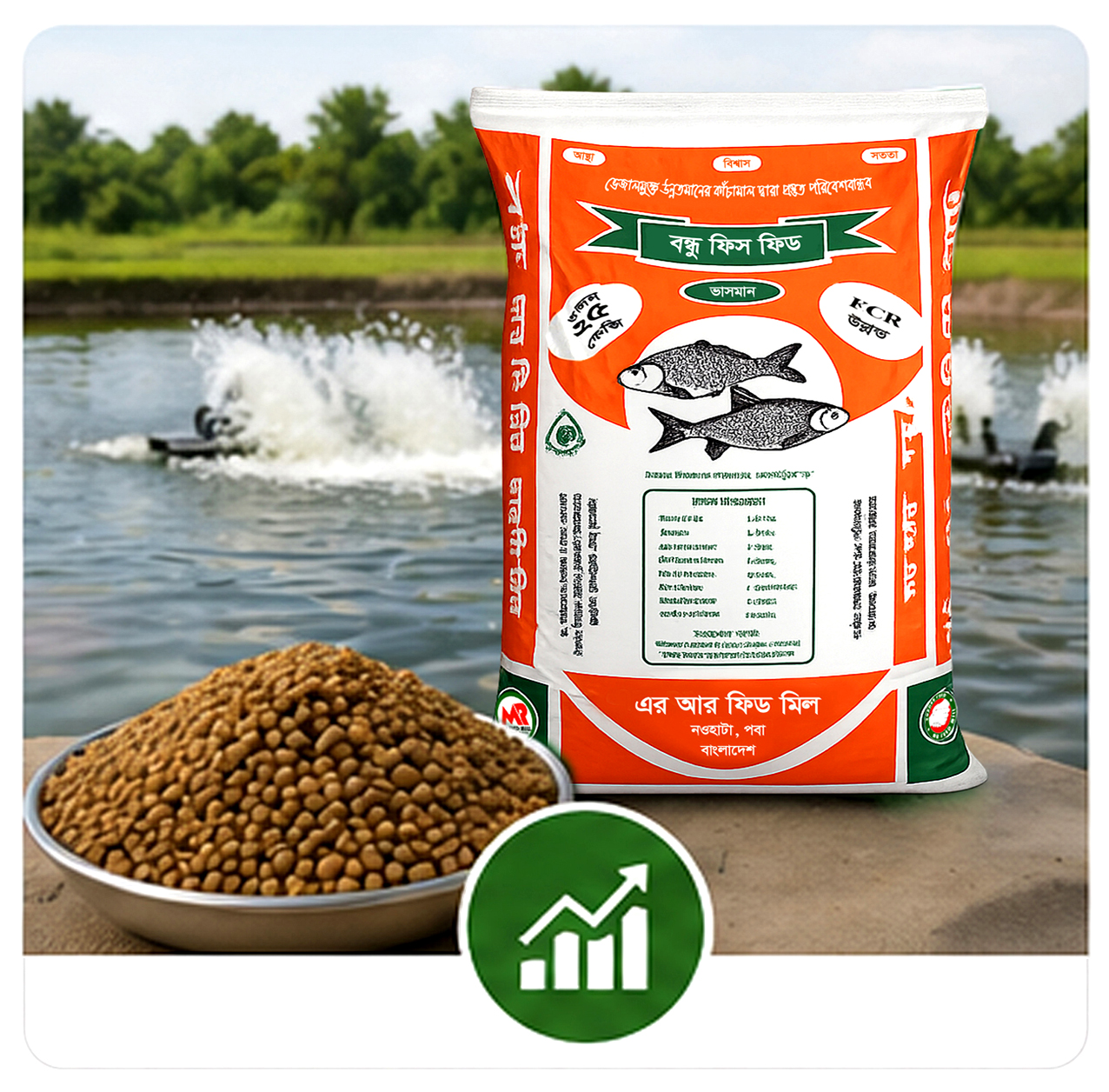 Bondhu Fish Feed enhances fish immunity, supports better digestion, and helps reduce disease risk for sustainable and profitable farming.